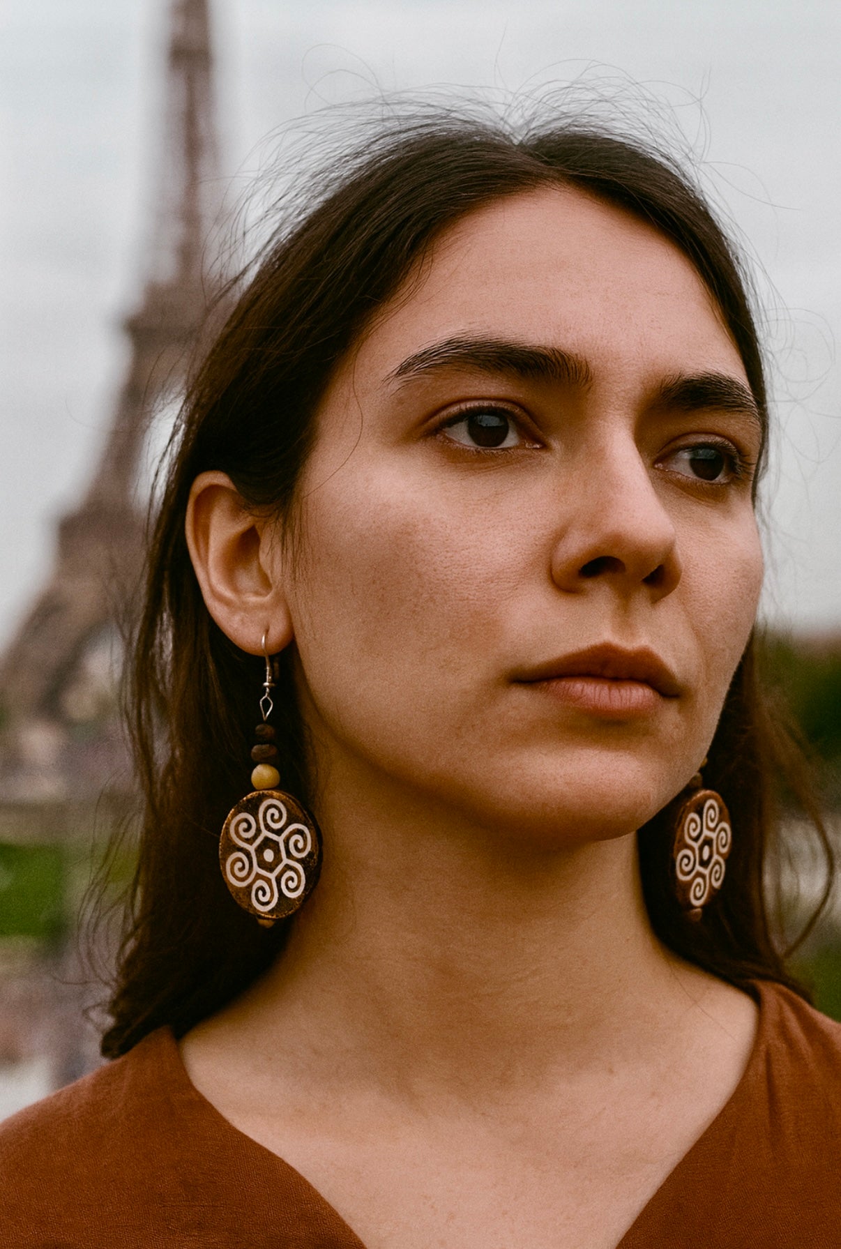 Inspired by the Akan people of Ghana, these earrings feature the Adinkra spiral symbol – representing life’s journey, resilience & growth. Handcrafted with earthy beads and natural carved pendants, they’re bold, lightweight, and full of meaning.